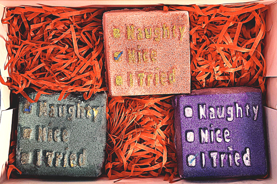 Immerse yourself in the unpredictability of our Naughty or Nice Bath Bombs, where the fizzing reveal mirrors the thrill of the season—whether it's a mischievous escapade or a serene sanctuary, your tub becomes the judge of indulgence.